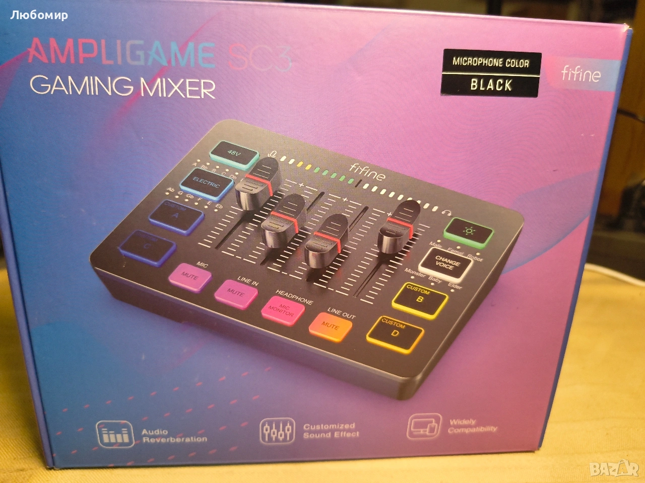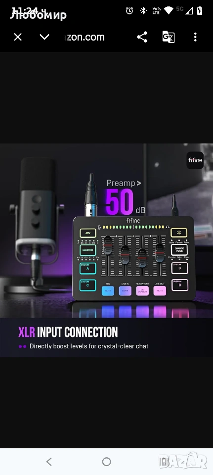 FIFINE Геймърски аудио миксер, стрийминг RGB PC миксер с XLR микрофонен интерфейс, индивидуално управление, фейдър за сила на звука, бутон за изключване на звука, 48V фантомно захранване, за подкасти/запис/вокали/игри, гласов усилвател, игра SC3.XLR вход за микрофон] На геймърския аудио миксер е разположен един XLR вход за микрофон, което е чудесно за подобряване на качеството на звука с вашата XLR конфигурация. XLR миксерът е стъпка към подобряване на стрийминга на живо. Аудио миксерът предлага вградено 48V фантомно захранване, което отваря повече възможности за микрофони. Използвайте го директно с вашия кондензаторен микрофон, но не решава проблема с допълнителните периферни устройства. (НЕ е налично за USB микрофон)