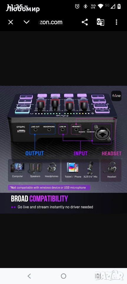 Съвети: 1.) USB-C към USB-A/C кабел, използван за свързване на миксер и компютър чрез Type-C интерфейс на миксера. 3.5 мм към 3.5 мм аудио кабел, използван за свързване на миксер и 3.5 мм аудио устройство (като телефон или таблет) чрез LINE IN на миксера. 2.) XLR кабел НЕ Е включен. Качеството на звука може да бъде повлияно от спецификациите на XLR кабела, като дължина, екраниране или състояние на конектора. Препоръчително е да използвате екраниран. 3.) Входен интерфейс: Микрофон, LINE IN и слушалки. 4.) Изходен интерфейс: Слушалки, LINE OUT и слушалки