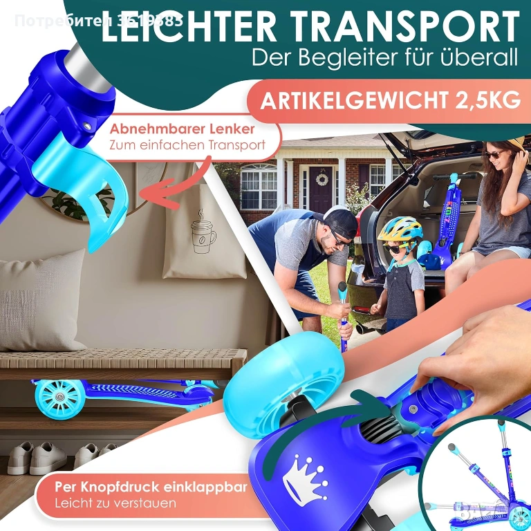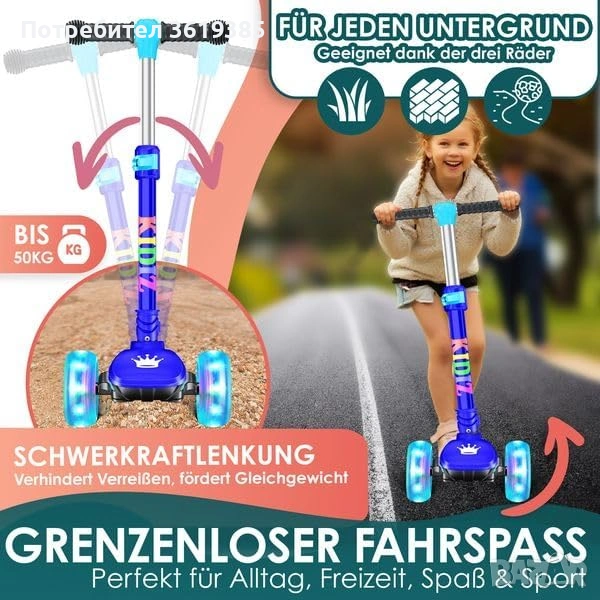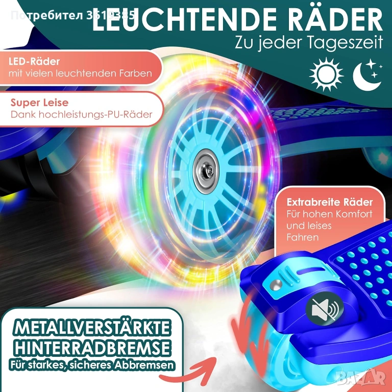 Детска тротинетка с PU LED светещи колела