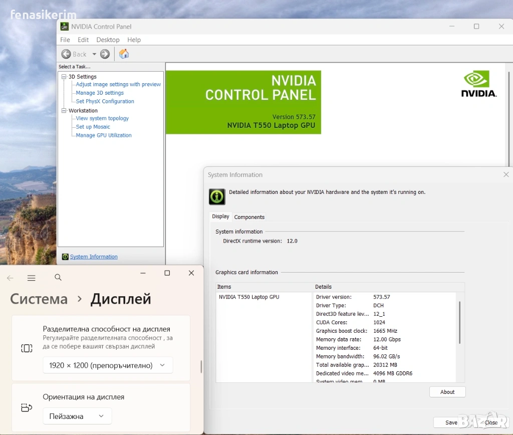 2 видеокарти : Nvidia T550 4GB DDR6 собствена памет + Intel Iris Xe Video - up to 20 GB Total Graphics memory.