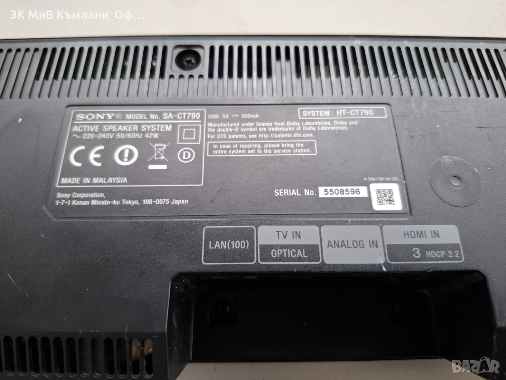 Soundbar Sony HT-CT790 → Обява 54063613