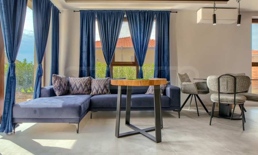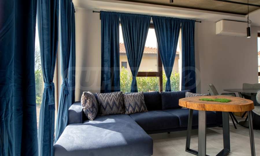 Къщата е обзаведена по индивидуален дизайнерски проект.