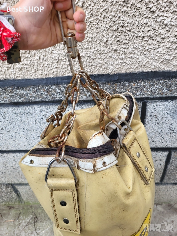 Крушата е в добро състояние, няма скъсвания или проблеми, има още доста живот в нея и бой да яде, доста тежка с височина 1.20м. Има си синджири за окачване на таван и карабинери!
