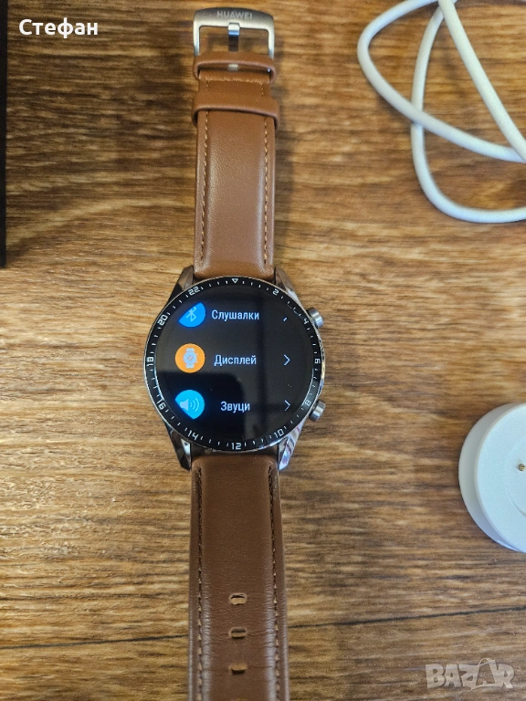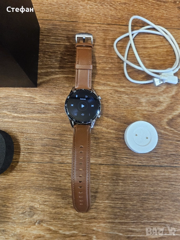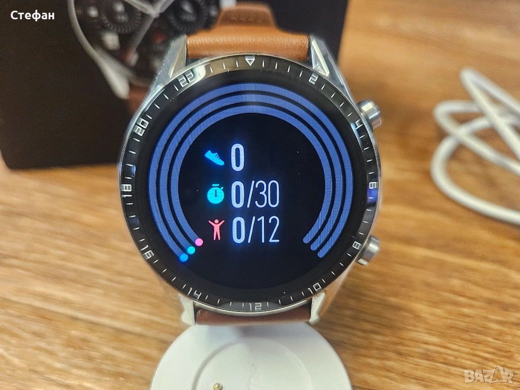 Часовникът е изключително запазен, работи бързо и стабилно благодарение на чипа Kirin A1. Продава се в пълен комплект с оригинална кутия, магнитно зарядно устройство и USB кабел