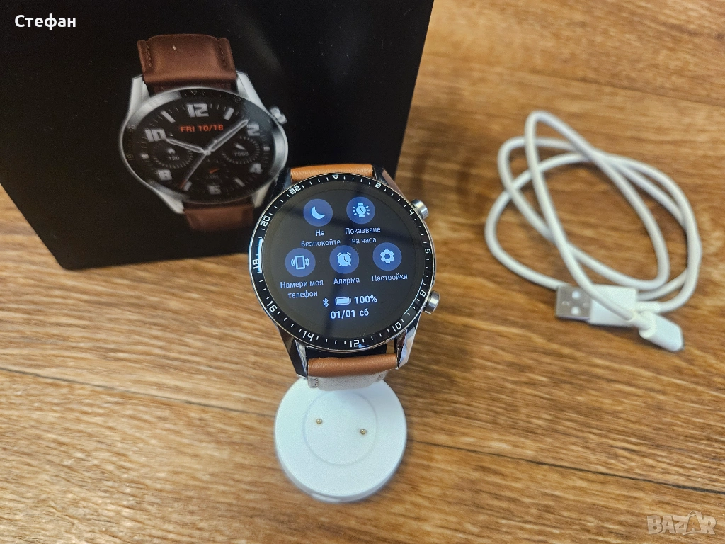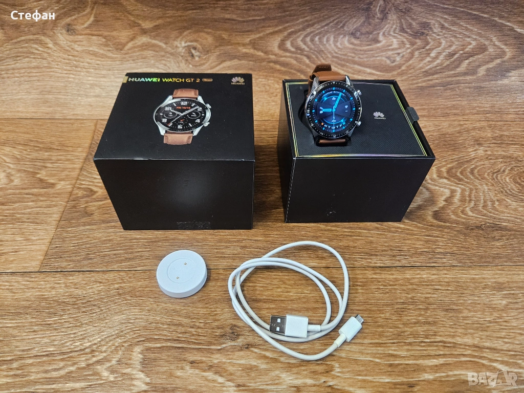 Продавам висок клас смарт часовник Huawei Watch GT 2 (версия 46мм) в отлично състояние. Моделът се отличава с елегантен дизайн, който напомня класически ръчен часовник, но предлага пълния набор от модерни смарт функции. Дисплеят е кристален AMOLED с 3D стъкло, което придава усещане за безкраен екран и премиум излъчване.