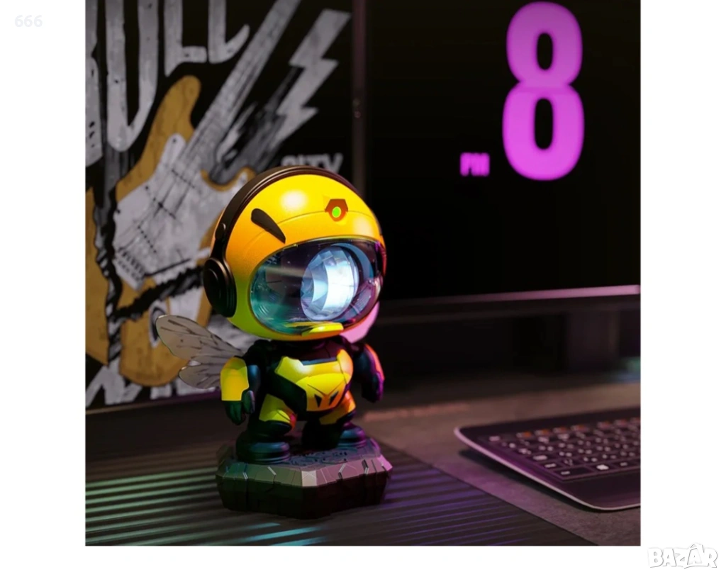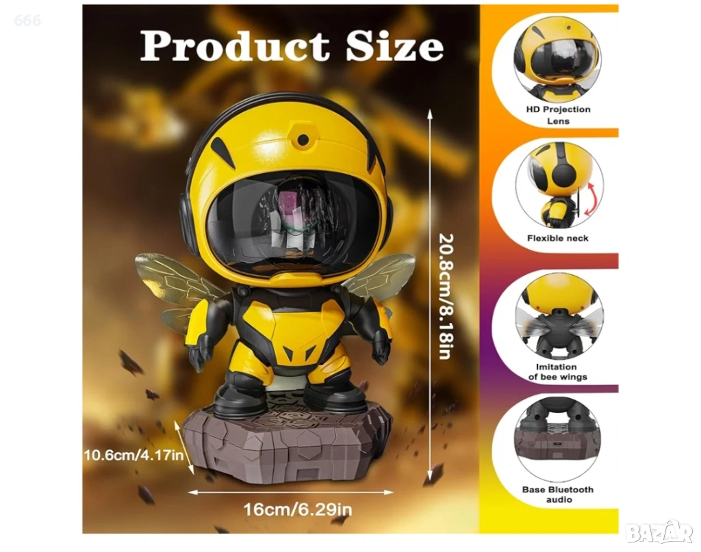 Играчка робот с регулируем ъгъл: Този светещ проектор за звездно небе е проектиран като малка пчела работничка, а главата е магнитно свързана с тялото за лесно регулиране на ъгъла на проекция на мъглявината; освен това основата е подвижна, а ръцете и крилата също могат да се позиционират, което го прави не само проектор за галактически звезди, но и сладка декорация за играчка робот.