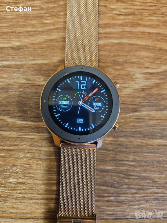 Моделът разполага с ярък кръгъл дисплей и е оборудван с енергоефективен процесор Nordic 52832, който гарантира плавна работа и дълъг живот на батерията. Часовникът е лек и удобен за целодневно носене, подходящ както за официални събития, така и за спорт.