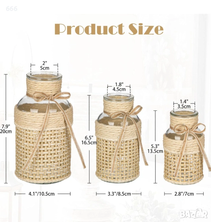 Комплект от 3-броя декоративни стъклени вази → Обява 54064178