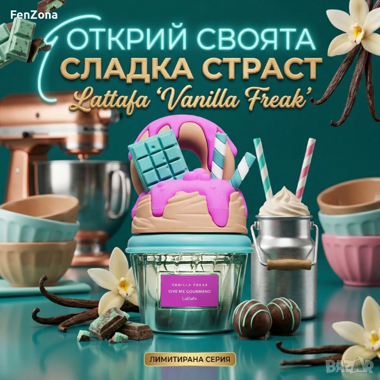 Сладък гурме аромат с нотки на ванилова торта Lattafa Give Me Gourmand Vanilla Freak-Вид аромат: гурме, сладък, унисекс