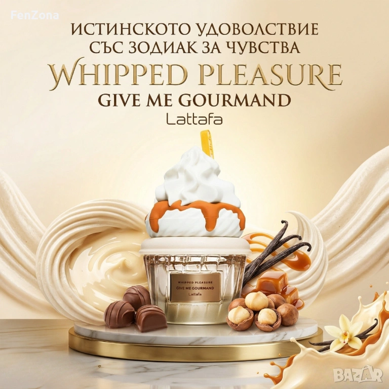 Унисекс парфюм Lattafa Give Me Gourmand Whipped Pleasure - С нотки на карамел, пуканки и мускус-Концентрация: парфюмна вода, осигуряваща добра проекция и устойчивост.