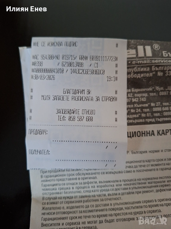 Пълна гаранция: Разполага с касова бележка и гаранционна карта за 3 години.