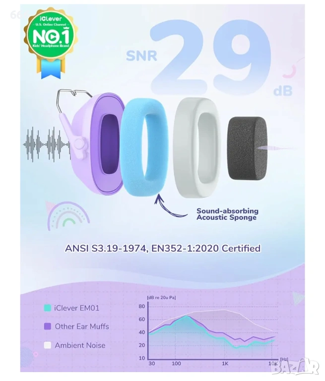 【Изключително намаляване на шума】След безброй тестове, проведени от инженерите на iClever, ние комбинирахме 22-милиметрова пореста звукопоглъщаща гъба и специално изработена акустична гъба тип „пчелна пита“, за да абсорбираме и намалим шумовете, като същевременно гарантираме удобно носене, постигайки съотношение сигнал/шум (SNR) от 29dB и предлагайки намаление до 46dB при определени сценарии. Моля, обърнете внимание, че антифоните не могат да елиминират шума на 100%.