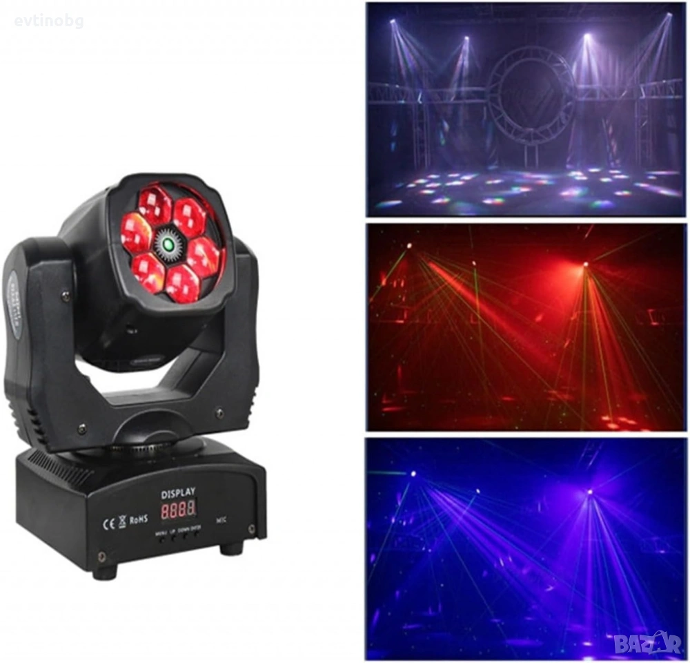 Преносими LED сценични светлини с движеща се глава и управление (6x12W + лазер)