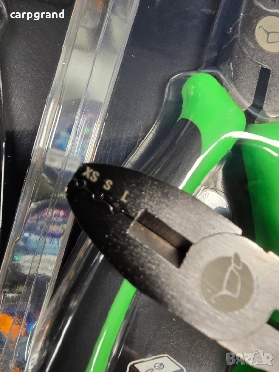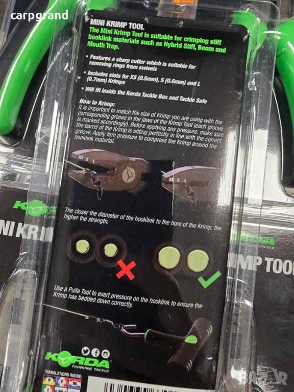 Клещите имат три канала XS, S и L за кримповете на Korda със съответните размери.