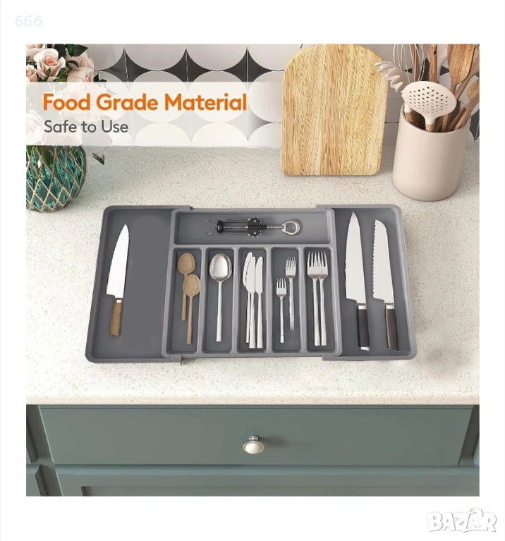 Разширяем органайзер за прибори за хранене, Прибори с голям капацитет, Регулируем органайзер за прибори, Органайзер за прибори за хранене за вилици, ножове, Многофункционални кухненски органайзери