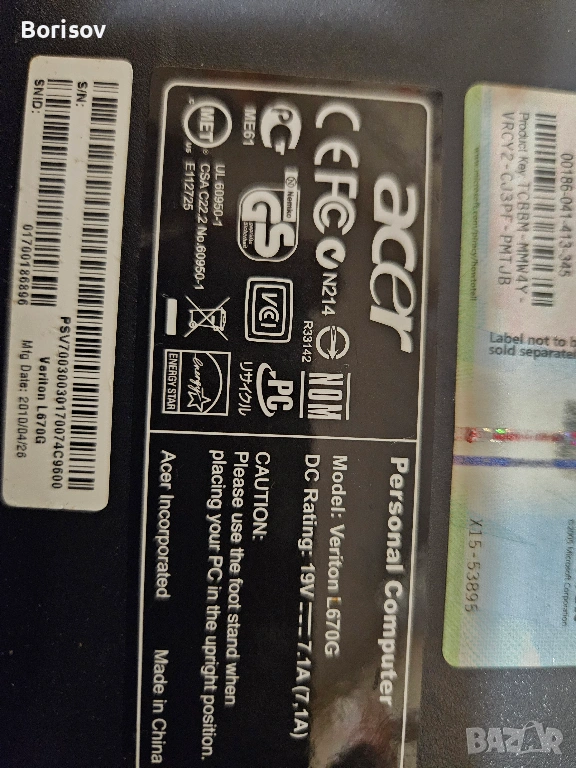 Продавам мини компютър Acer Veriton. L670G ,2Х 3.16Ghz → Обява 54064898
