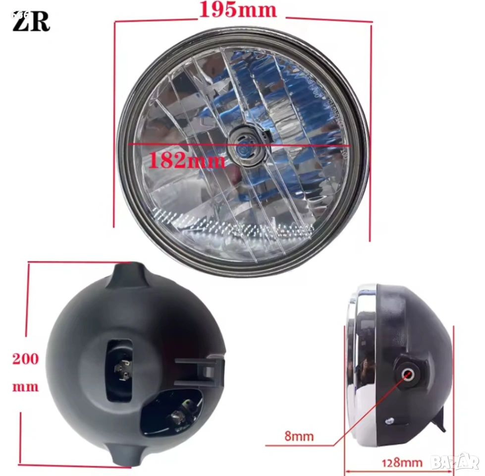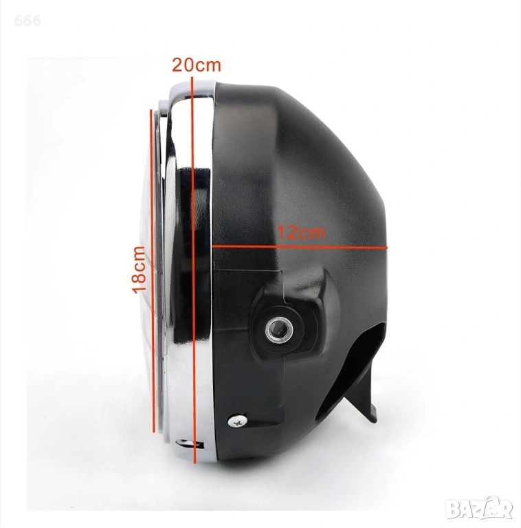 инча фар за мотоциклет, Mmgoqqt, 35W, бяло стъкло, кръгла форма → Обява 54065004