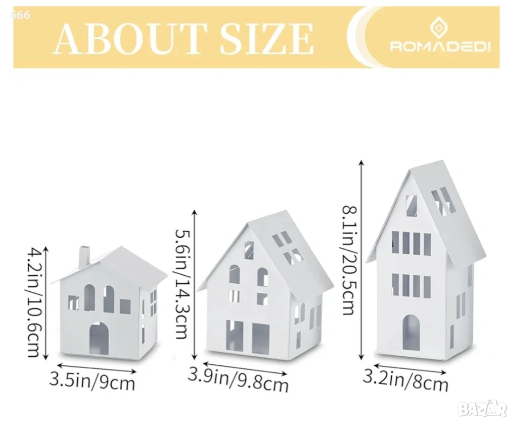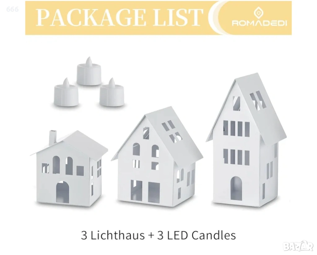 Свещници, CE, комплект от 3 броя, форма на къщичка, за украса