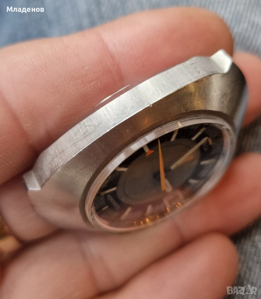 Часовника има ръжда на места по машината , което не е фатално и мисля , че при една професионална профилактика всичко ще е наред . Всичко му е оригинално и запазено . Не ми предлагайте всевъзможни измислени цени , не държа да го продам и на мен си ми харесва .