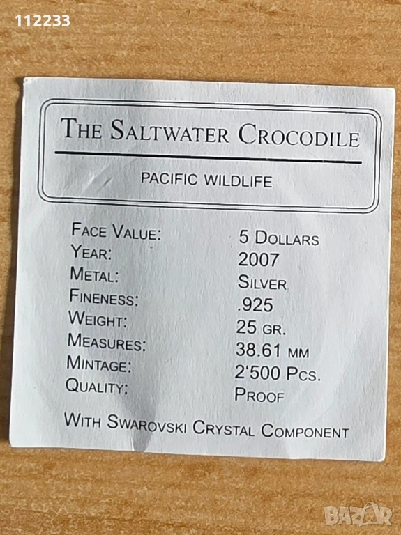 "Соленоводен крокодил" сребърна монета, снимка 1 - Нумизматика и бонистика - 54065340 "Соленоводен крокодил" сребърна монета, снимка 2 - Нумизматика и бонистика - 54065340 "Соленоводен крокодил" сребърна монета, снимка 3 - Нумизматика и бонистика - 54065340 1/3