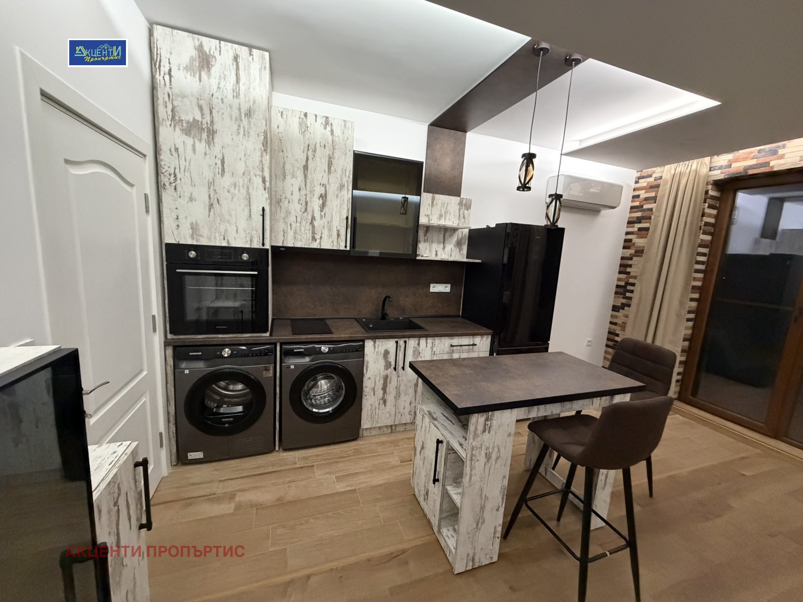 Агенция за недвижими имоти Акценти Пропъртис Ви предлагаме артистично жилище, единствено по рода си за гр.В.Търново, за хора с нестандартно виждане за уют и лукс.Предлагаме Ви апартамент на последен жилищен етаж, с прекрасна панорамна гледка. Дневна с кухненска част и спалня в един обем, покрита тераса 14 квадрата, коридор и баня с тоалетна. Хидромасажна вана с топла вода и невероятна гледка към Велико Търново!!!Чисто ново обзавеждане , пералня, сушилня , керамични котлони, печка, хладилник, телевизор 50 инча, най-висок клас климатик Mitsubishi Heavy Industries 18 за целия пентхаус. Мебелите са правени по поръчка \ПДЧ, Черен матов алуминий и стъкло/Първо отдаване под наем. Предлага се с възможност за наемане на надземно паркомясто, на цена по споразумение на месец /при желание от наемателя/. За повече въпроси на посочения телефон.При запитване мога да изпратя видео!Номер на офертата 24262.