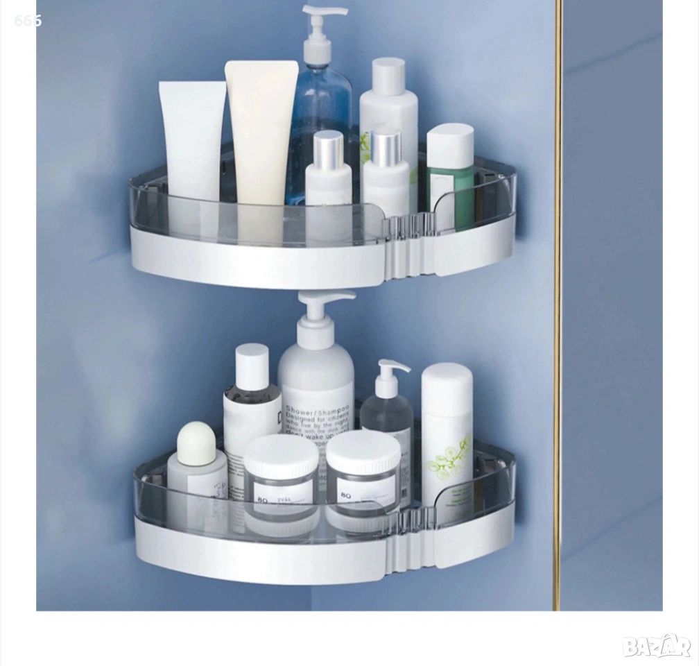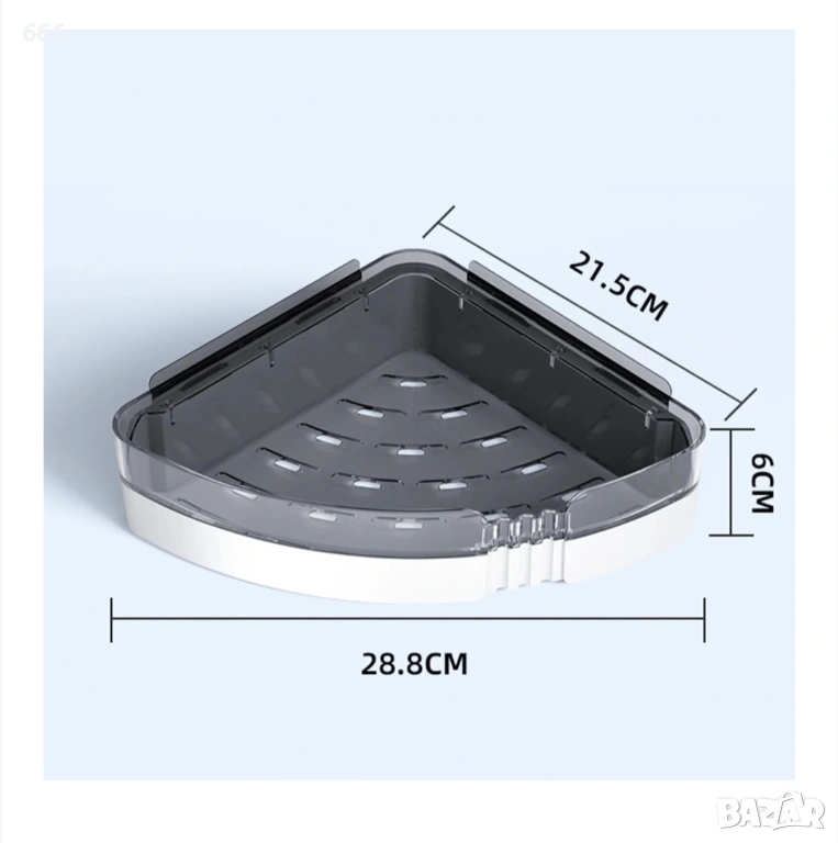 Ъглова поставка за баня, 21,5x28,8x6 см, PP, многофункционален дизайн, без перфорация.