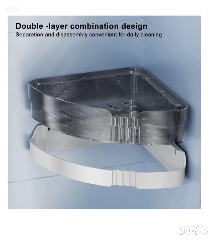 Описание: L-образният му дизайн позволява ефективно съхранение и лесно може да побере по-тежки контейнери. Изработен от висококачествен полипропилен, този рафт е устойчив на ръжда, надраскване и е създаден за дълготрайна употреба. Дизайнът с кухо дъно осигурява бързо оттичане на водата, поддържайки аксесоарите за душ чисти и сухи. Не само е идеален за съхранение в банята, но може да се използва и като поставка за подправки в кухнята или за окачване в хола. Не са необходими инструменти за пробиване, така че няма да повредите стените си. Двуслойният комбиниран дизайн е отделен и подвижен, което го прави удобен за ежедневно почистване. Получете допълнително място за съхранение сега с нашия универсален триъгълен рафт за баня! Име на артикула: Рафт за баня Материал: PP Стил: Триножник Характеристики: Креативен, Без пробиване, Многофункционален Размери: Дължина на късия ръб: 21,5 см/8,46" (приблизително) Дължина на дългия ръб: 28,3,8 см/Височина: 11,3 см/Височина 6 см/2,36" (приблизително) Забележки: Поради разликата в осветлението и настройката на екрана, цветът на артикула може леко да се различава от снимките.