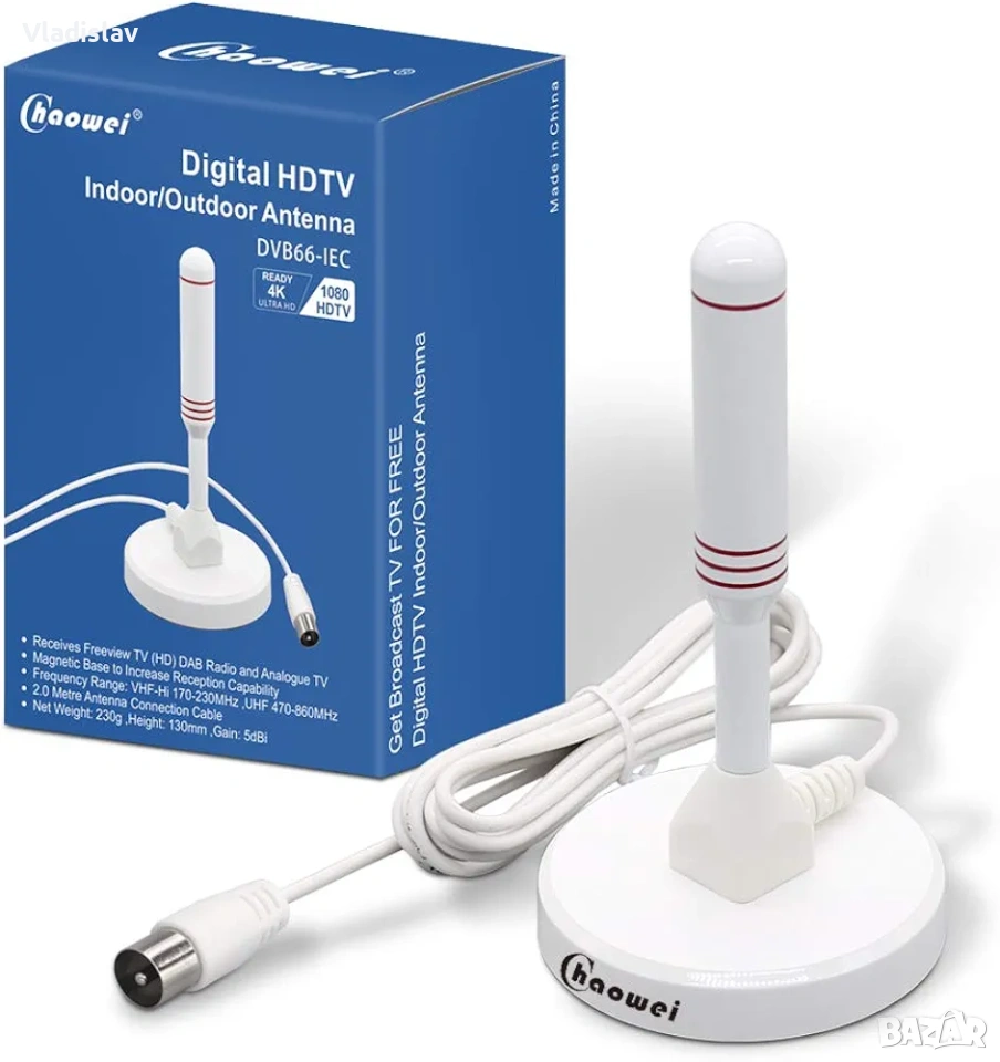Преносима цифрова телевизионна антена Chaowei с магнитна основа за вътрешна и външна употреба