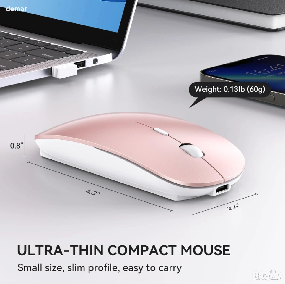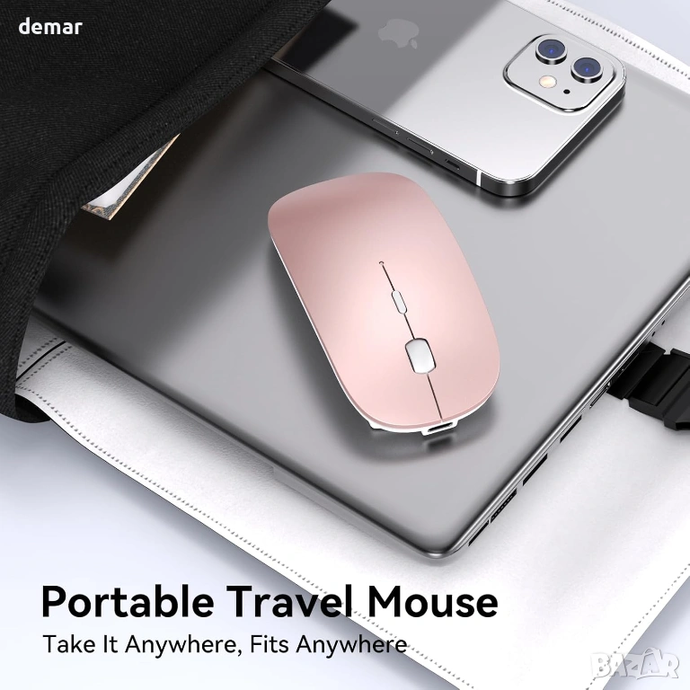 Безжична мишка RaceGT USB C и USB A, преносима, лека, оптична, регулируеми DPI, розова