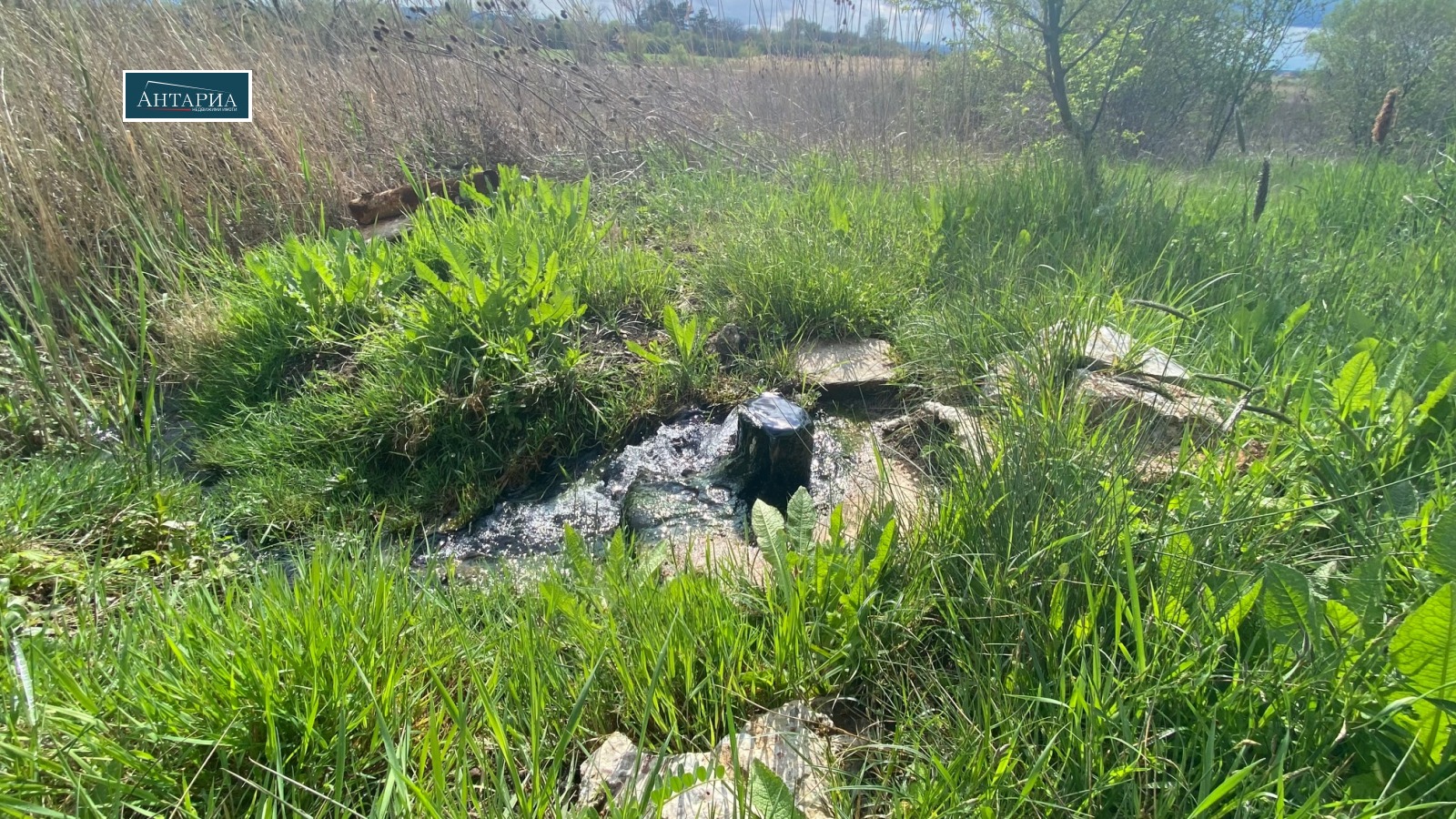 Просторен поземлен имот в урбанизирана зона, с площ от 3365 кв.м и собствен водоизточник за топла вода (сондаж за вода с температура 26 градуса/. Достъпът е по черен път.