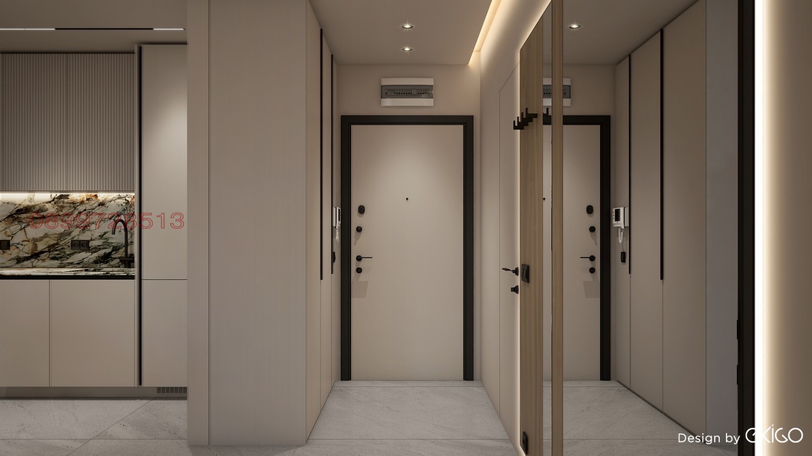 Луксозно завършени общи части с полиран естествен камък по дизайнерски интериорен проект на STUDIO CREATIVE;