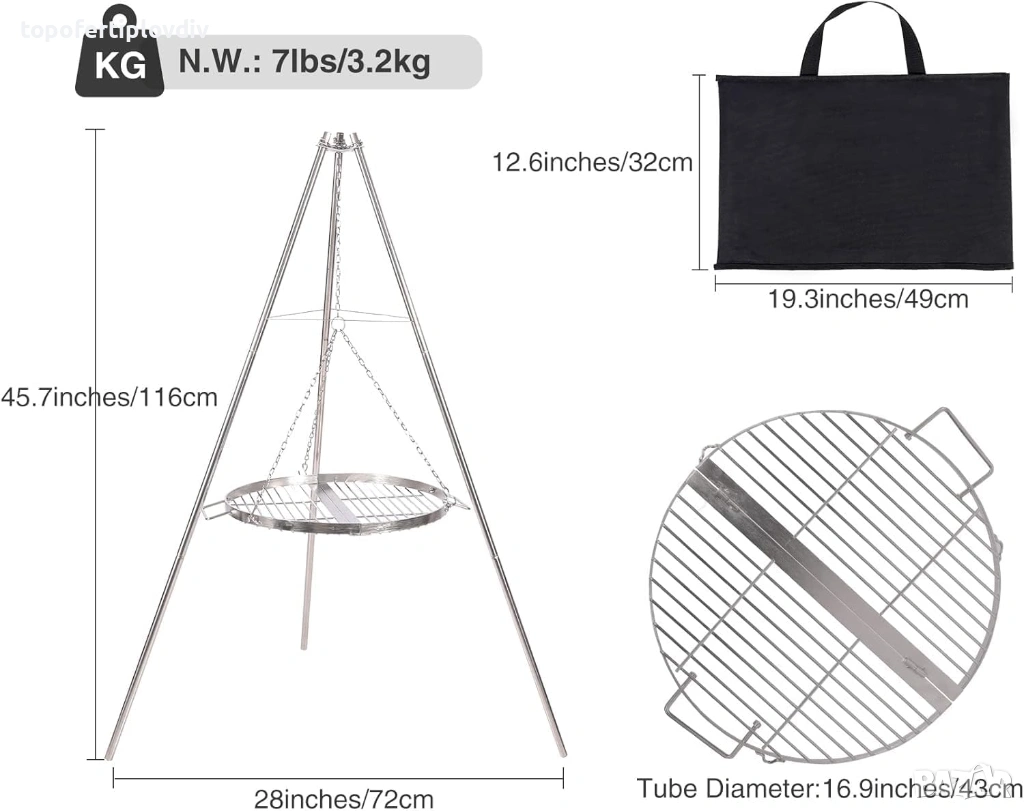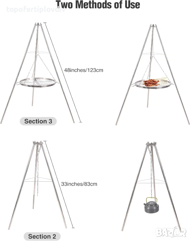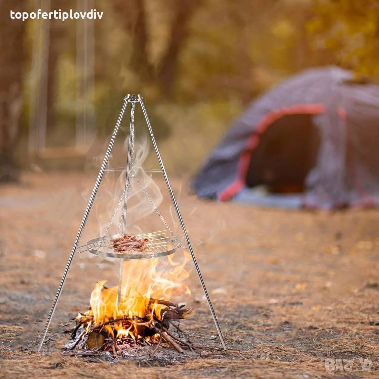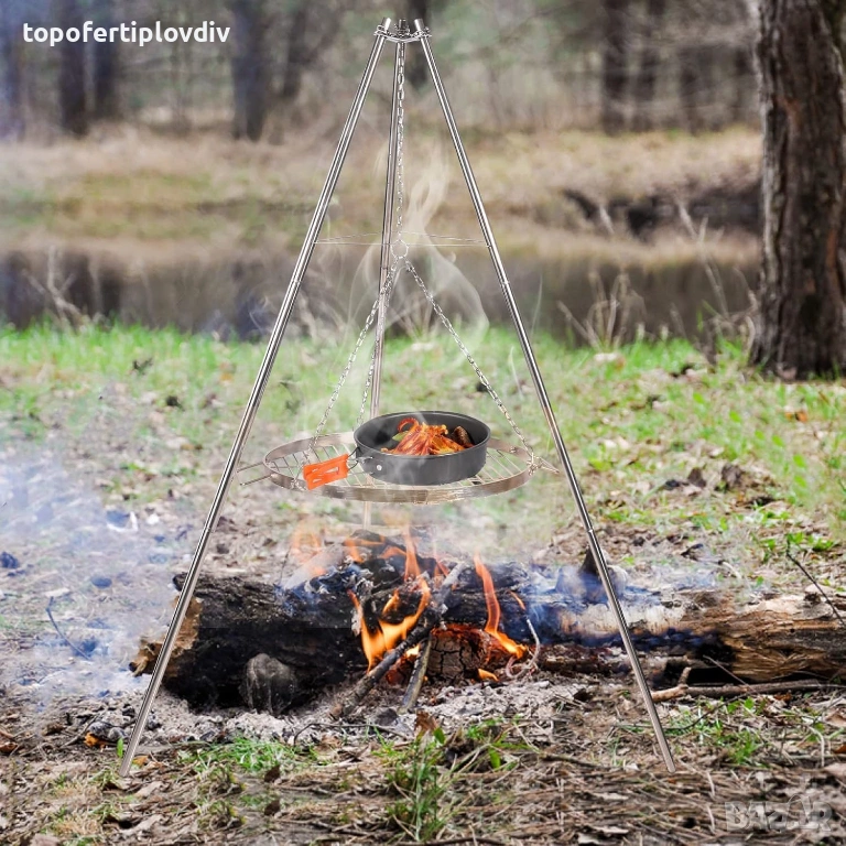 Безопасен и стабилен: този грил с 3 крака има здрав и стабилен дизайн със статив. Идеален за различни видове дейности на открито, като барбекю, пикник, къмпинг, туризъм и др.