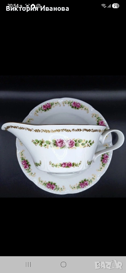 Комплект от 2 Елегантни плата за сервиране и приказна сосиера с поднос с декори от разкошни цветни букети от рози ,перфектно запазена позлата и изящен златен кант🔝