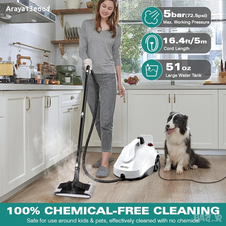 KROQO SW618-D е мощен и универсален парочистач, предназначен за ефективно премахване на мръсотия, мазнини и бактерии без химически препарати. Със силна пара, бързо нагряване и 23 специализирани аксесоара, уредът осигурява дълбоко почистване на различни повърхности като подове, плочки, прозорци, тапицерии и дори кухненски уреди и автомобили.