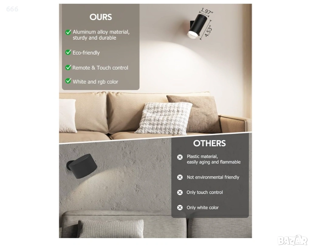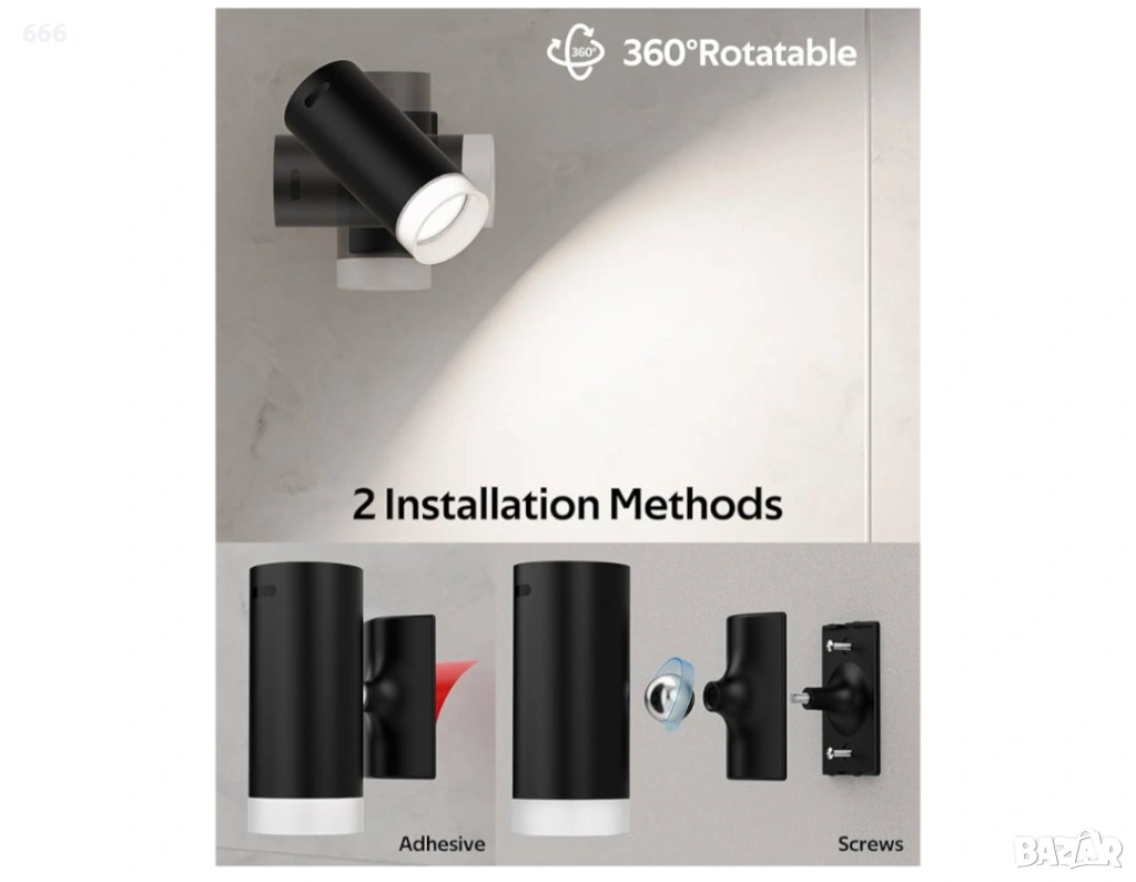 Лесен монтаж: Липсата на окабеляване опростява процеса на монтаж и елиминира нуждата от електротехник. Изберете да използвате винтове или силно лепило в зависимост от материала на стената. Лепилото се препоръчва за керамични плочки, гладък мрамор, стъкло или дървени стени за по-здрава връзка.
