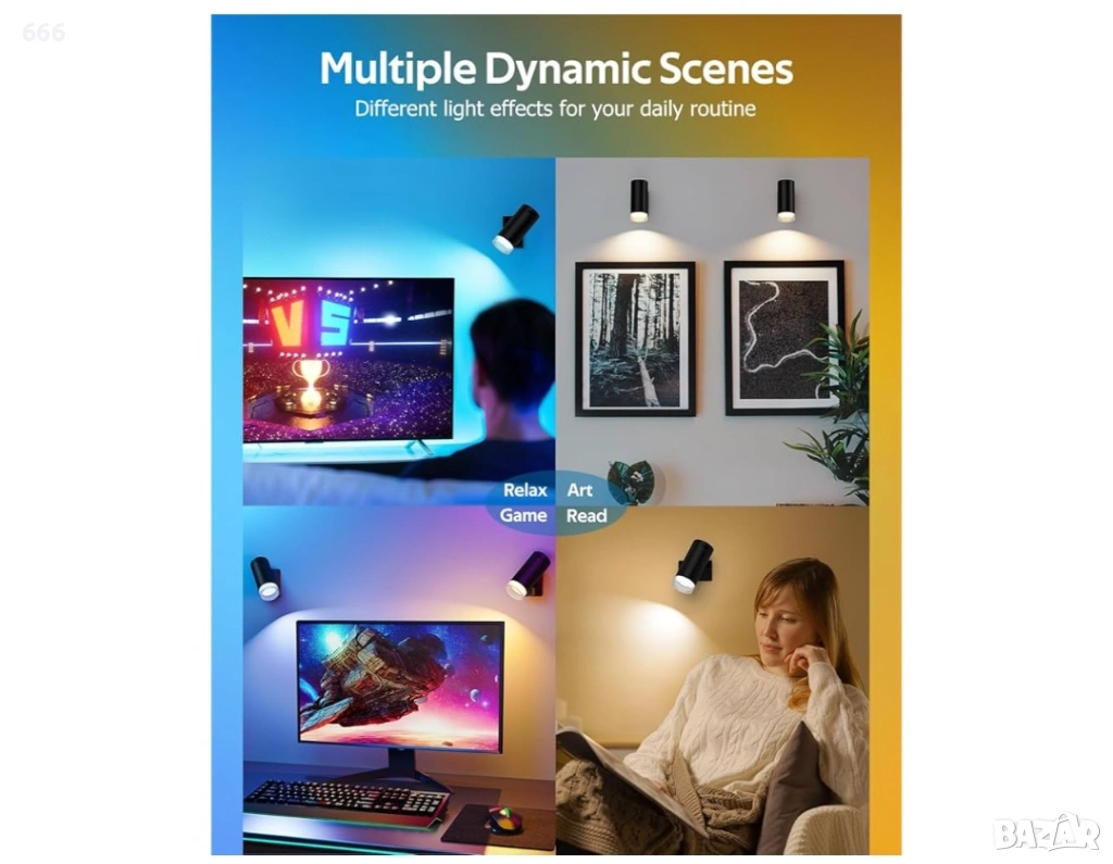 [Функция завъртане на 360 градуса] Тези стенни лампи предлагат изключителна гъвкавост благодарение на 360-градусовия си магнитен дизайн с топка. Тази гъвкавост позволява на потребителите прецизно да насочват светлината там, където е необходимо, адаптирайки се към различни изисквания за осветление. Подходящи за спални, нощни шкафчета, снимки, детски стаи, телевизионни стени, дневни и апартаменти.