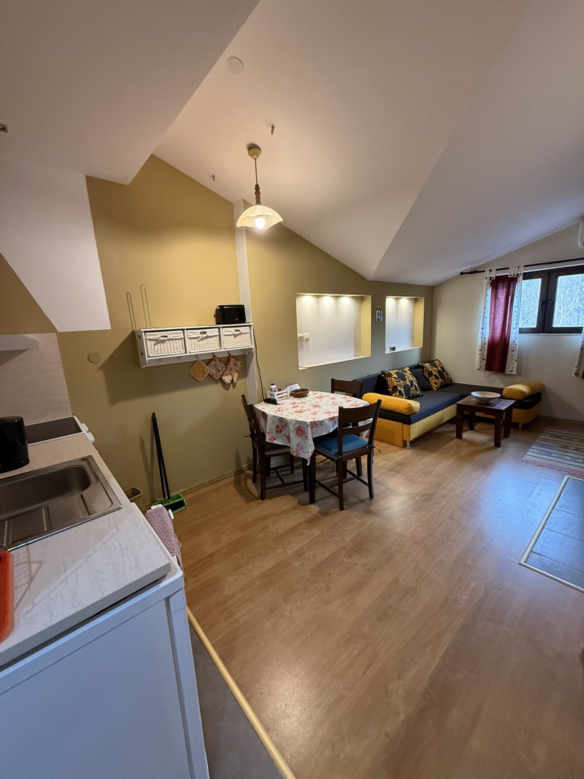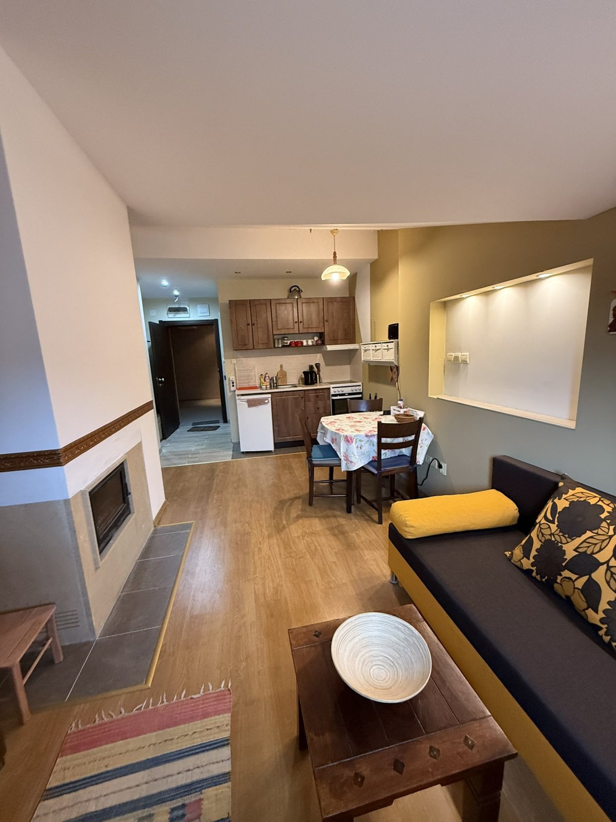 В него се влиза през коридор, където е разположена всекидневната. Кухнята е оборудвана с фурна, котлони и хладилник. Има трапезна маса, мека мебел и холна маса. Всекидневната разполага с камина. От нея се излиза на балкон, който има гледка към планината. Спалнята е с голямо двойно легло. От нея се излиза на балкон, който е с южна гледка.Към спалнята има и баня, която е с вана и бойлер.
