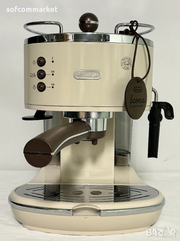 Еспресо машина DeLonghi Icona Vintage ECOV 311.BG в елегантен бежов цвят. Машината съчетава уникален ретро дизайн от 50-те години с отлично качество на кафето.