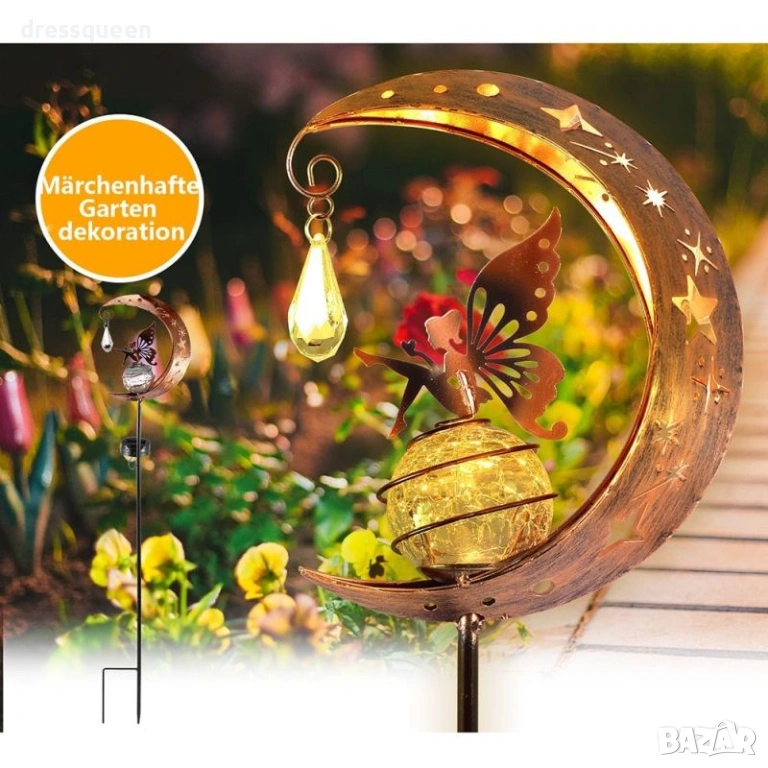 1 брой Декоративна соларна лампа „Фея върху полумесец“.