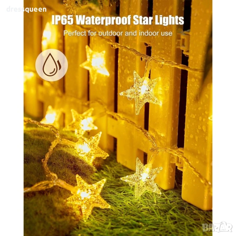 Качество: 20 красиво оформени звездички, разположени върху лек и гъвкав гирлянд.