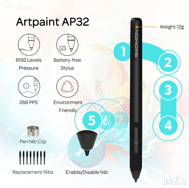 【AP32 съвместим стилус】Стилусът без батерии елиминира неудобството от зареждането на писалката. 【8192 нива на натиск и 4 персонализируеми експресни клавиша】Той предлага прецизен контрол и точност на върха на пръстите ви, което ви позволява да рисувате по-естествени линии и да подобрите творческия си резултат. 4-те персонализируеми клавиша могат да бъдат конфигурирани да изпълняват повече функции, както желаете. Използването им по време на работа значително ще подобри работния ви процес.