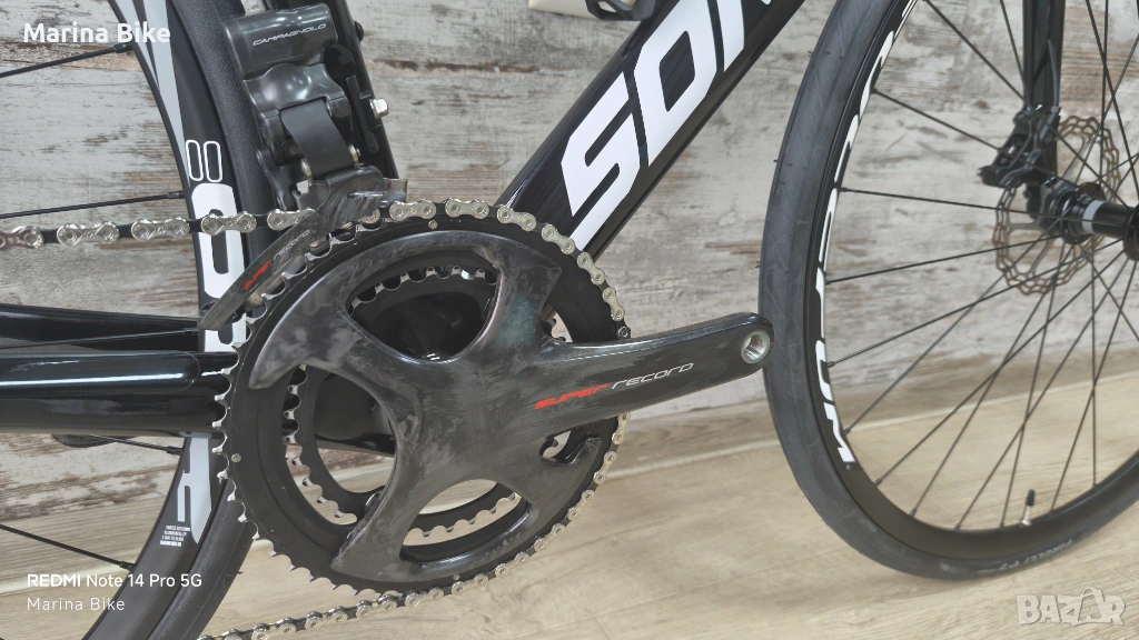 3. Команди - Campagnolo Super Record EPS Disc, за 2x12 електронни скорости и хидравлични дискови спирачки, одраскване по основата на лявата ;