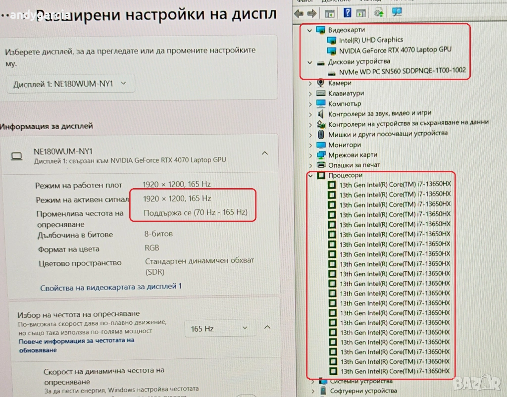 - мощен процесор от ново поколение Intel Core i7 - 13650HX с 14 ядра и 20 нишки, 24мб. кеш.