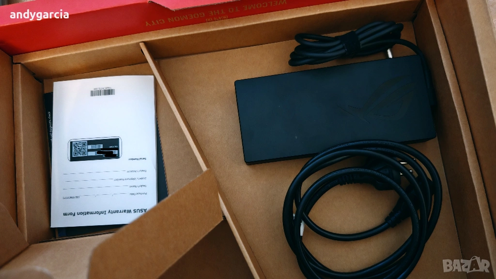 Лаптопа е пълен комплект, както си го взимате от магазина с кутия, гаранция и касов бон.