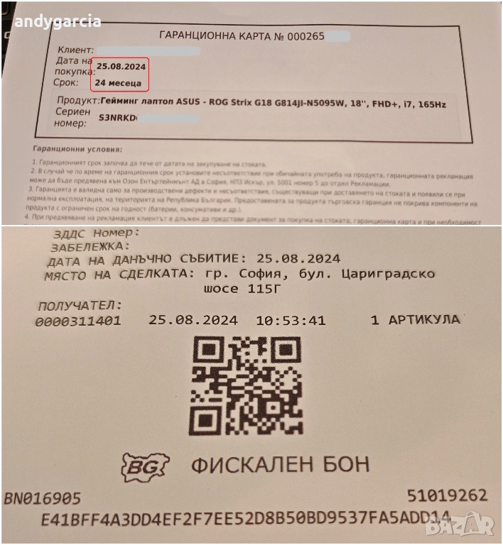 Гаранцията е към Озон до 25.08.2026 год. и към всеки един сервиз обслужващ марката.