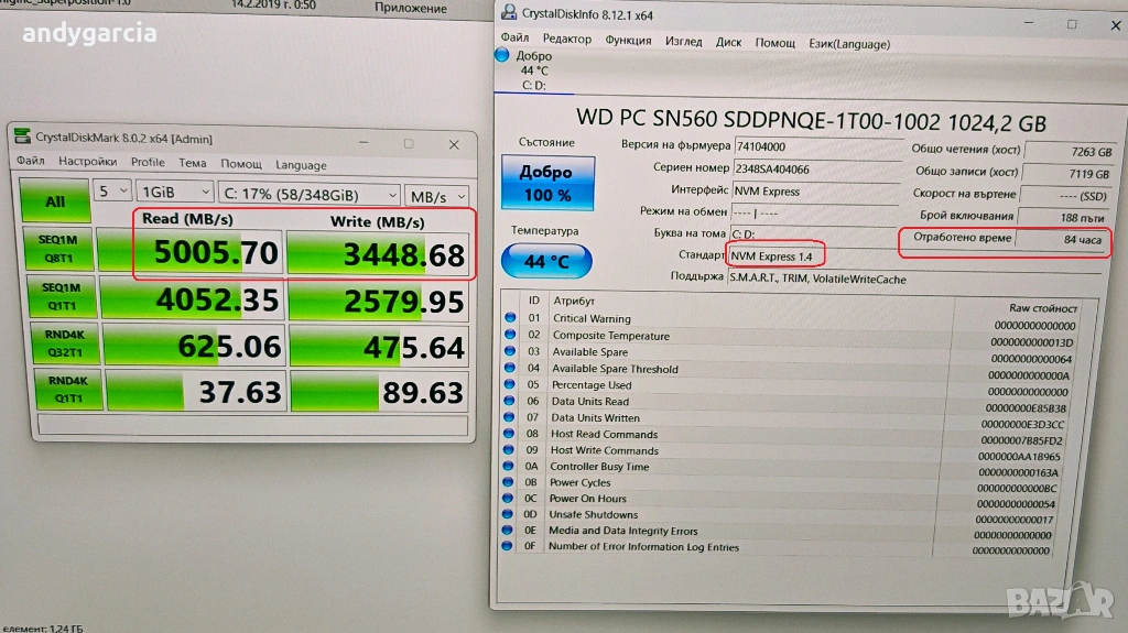 - светкавичен диск 1024GB SSD NVMe 2280 М2 от по-новото Gen 4 поколение със зашепетяващи скорости на четене и запис съответно 5200/3500 mb./sec.
