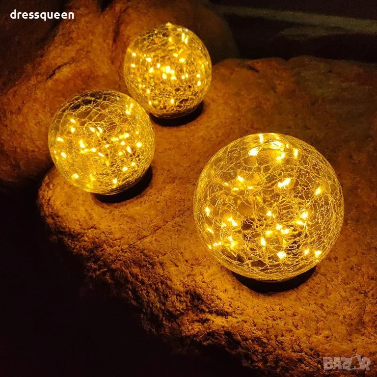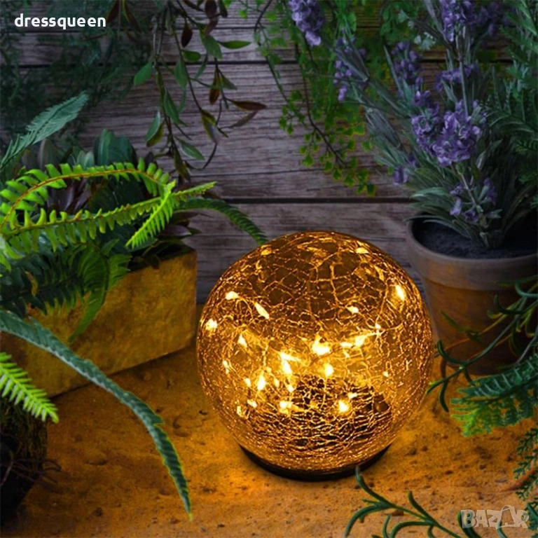 LED градинска лампа със соларен панел и корпус от напукано стъкло