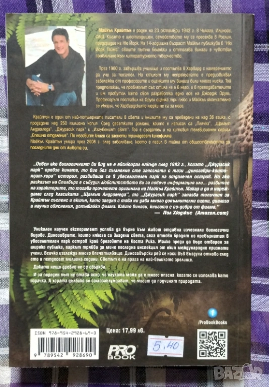 "Джурасик парк" на Майкъл Крайтън → Обява 54066399