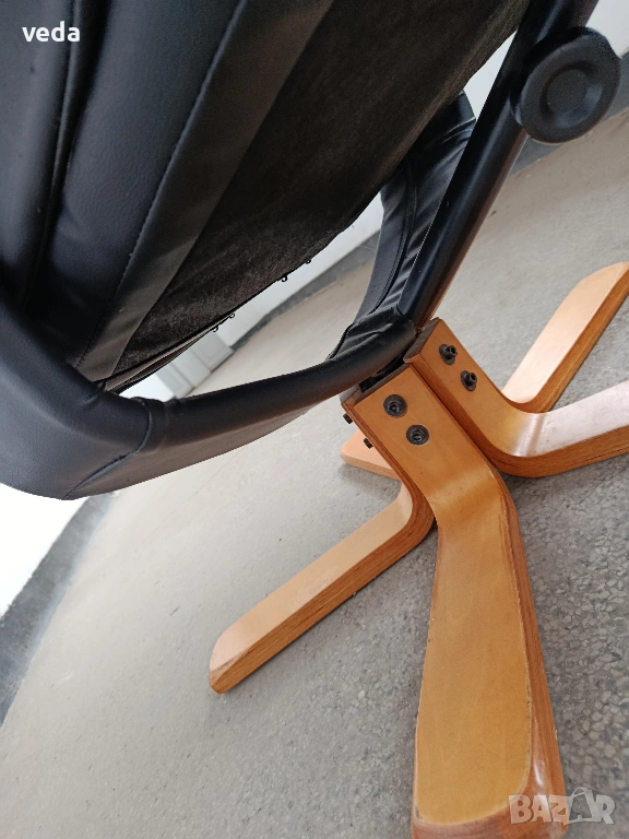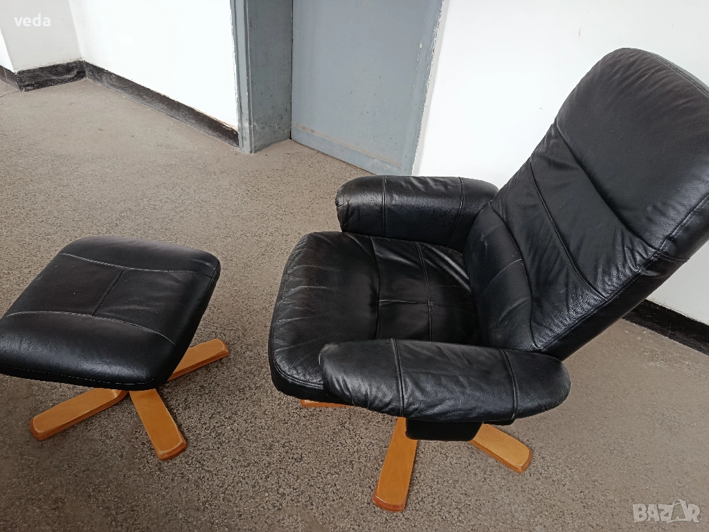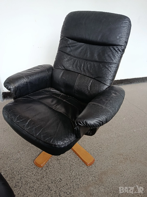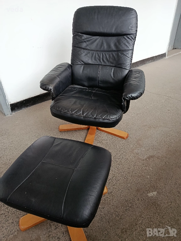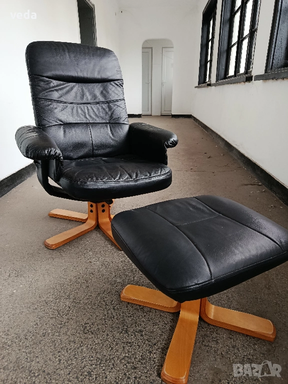 Страхотен кожен стол в комплект с табуретка естествена кожа → Обява 54066812
