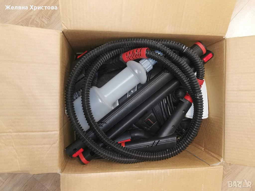 • Пълен комплект аксесоари: (маркуч, различни четки, накрайник за прозорци, удължителни тръби).